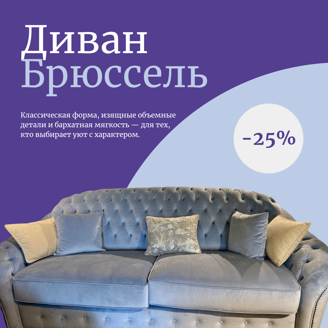 Освобождаем пространство к дню рождения салона — отдаём диван «Брюссель» со скидкой 25%.